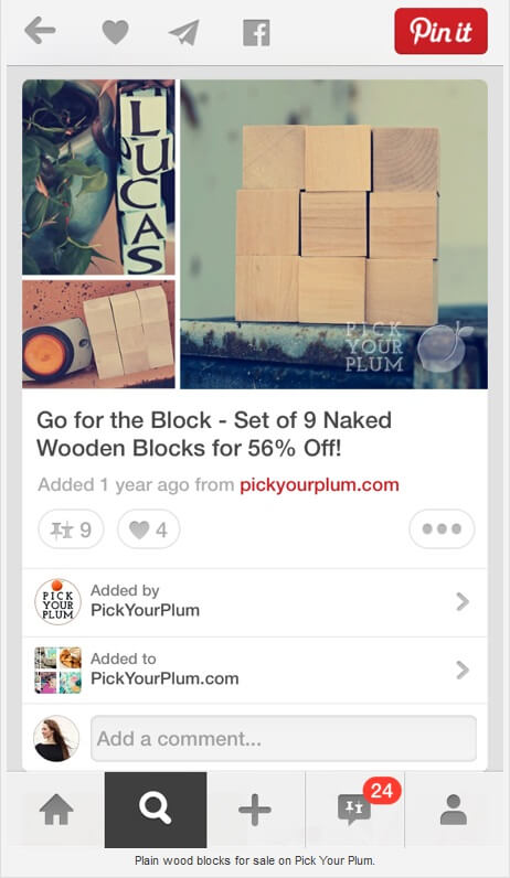 Периодически Pick Your Plum выставляет на продажу набор простых деревянных блоков. В первый раз продажи были умеренными. В следующий раз они разместили пост с ними на Pinterest, в рубрику «Идеи».