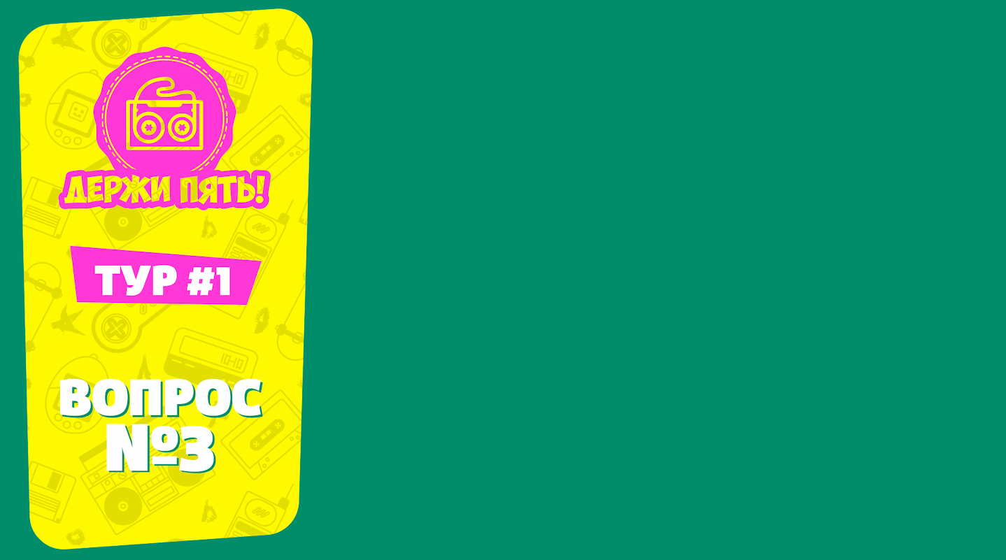 У ребят из квиза «Держи Пять!» еще не было опыта ни в переводе игр в онлайн, ни в создании визуальной концепции по высоким (да, занудным) требованиям, а сроки поджимали. Поэтому мы со своей стороны на коленке сами придумали название и логотип. Все остальное визуальное наполнение накидали по остаточному принципу за несколько дней. Не совсем наша стилистика, не очень современно, но мы решили, что для теста «пойдет».