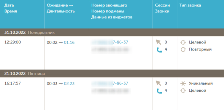 Отражение повторного звонка в колл-трекинге