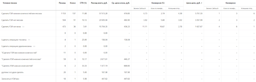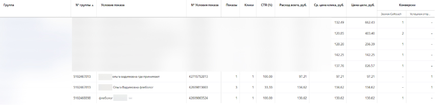 Как результат – получили дешевые конверсии по ключевым фразам с именами врачей.