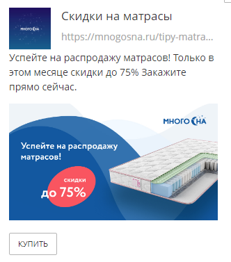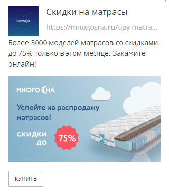 Также мы делили аудитории ремаркетинга по разным категориям: посетители страницы матрасов/кроватей.