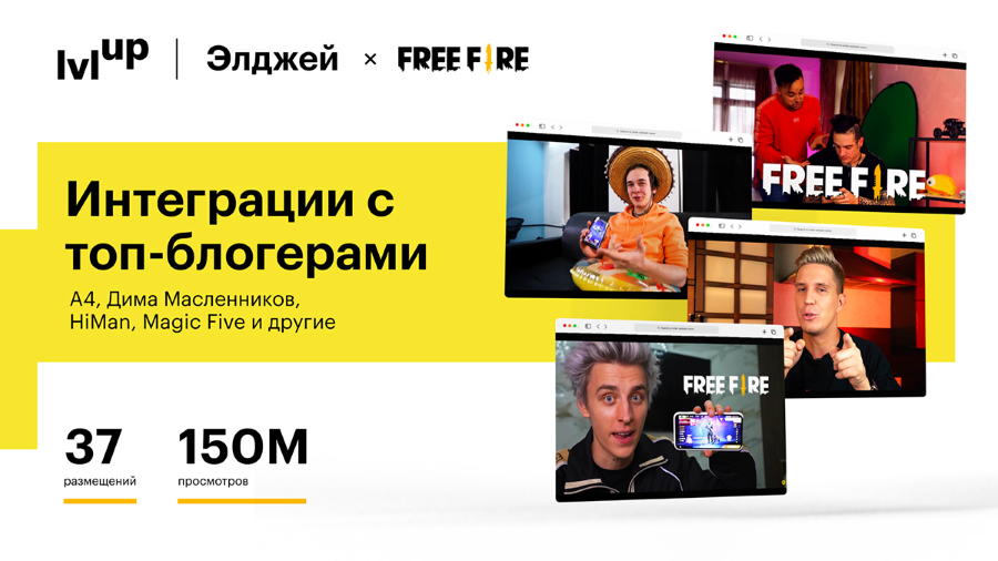 Продвижение мобильных игр с помощью инфлюенсеров – известный и проверенный формат, к которому прибегают многие компании. Вместе с Garena Free Fire команда LVL UP пошла еще дальше: в знаковой для локального рынка коллаборации мы помогли объединить виртуальный мир игры с музыкальным мейнстримом – и получили охват в сотни миллионов просмотров.