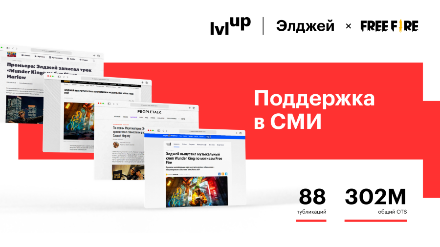 Благодаря эффективной комбинации форматов и профессиональному взаимодействию всех участников в кампании удалось объединить лучшее от двух миров – музыкального мейнстрима и вселенной «королевской битвы» Free Fire – и получить отличные результаты: