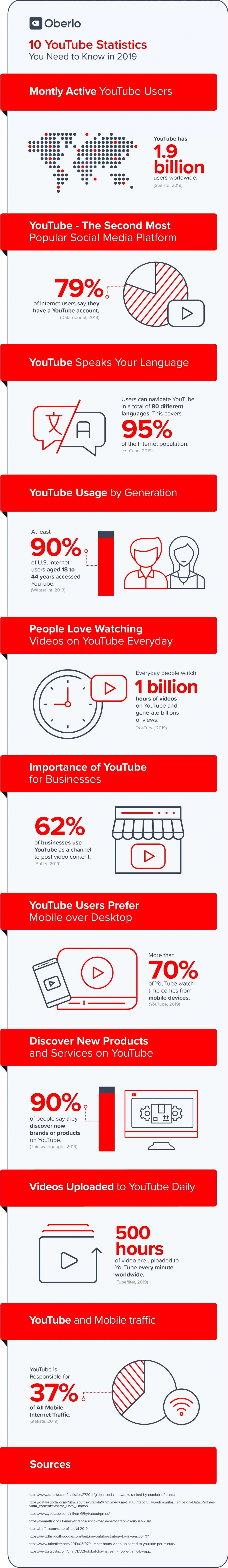 Сколько составляет дневная аудитория YouTube? Каково соотношений мобильного трафика соцсети к десктопному? Сколько минут видео выкладывается каждый час? На эти и другие вопросы ответило западное агентство Oberlo в своей компиляции результатов разных исследований.