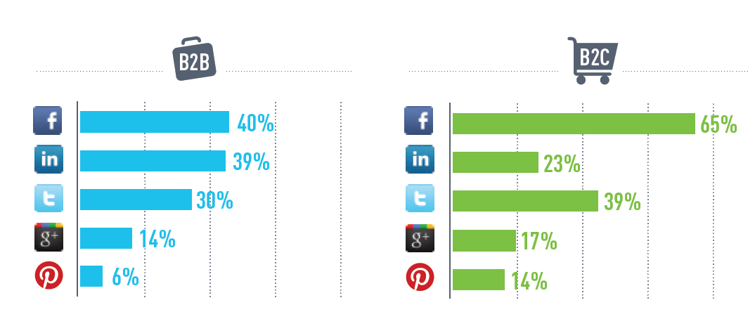 Если раньше западные маркетологи активно использовали SEO и контекст, то теперь пальму первенства отвоевало продвижение в социальных сетях. На сегодняшний день 90% западных компаний, как B2B, так и B2C, используют соцмедиа. Такие данные получила аналитическая компания Webmarketing 123 в ходе опроса более 500 американских маркетологов.