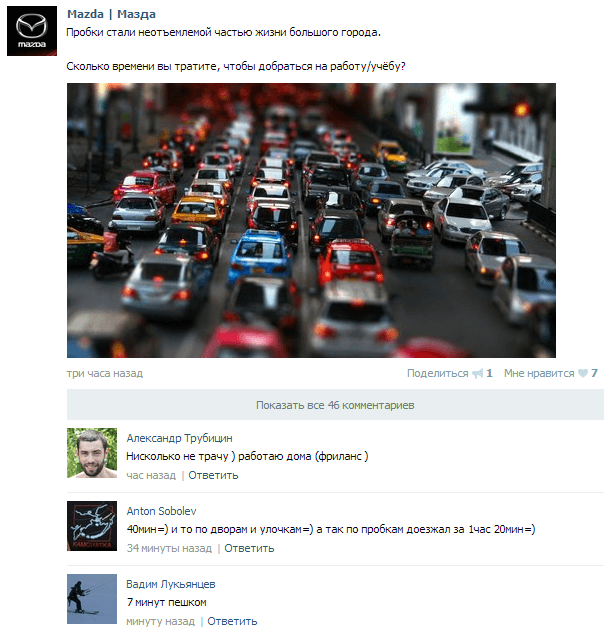 Также Юлия отметила, что необходимо поощрять эксгибиционизм подписчиков. Однако наблюдалась проблема того, что большинство постов на стене касались вопросов тюнинга и ремонта машин. Их было решено удалять спустя три дня. Весомая польза в том, что подписчики могут ответить на вопросы, на которые не может ответить компания.