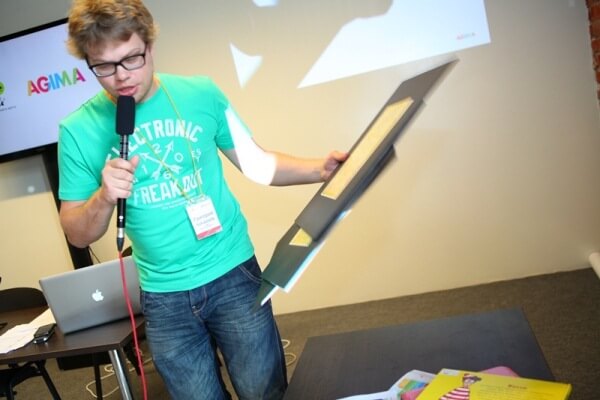 На этой торжественной ноте Григорий Коченов, AGIMA, фактически разыграл перед аудиторией спектакль. Он предложил публике встать на место клиента, которому будет презентована дизайн-концепция его продукта, и наводнил зал красочными брошюрами, не переставая демонстрировать на экране все новые проекты. Гостям понравился подобный подход – презентация вышла «живой» и наглядной.