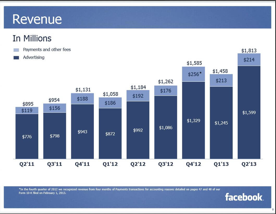 Социальная сеть Facebook огласила финансовые показатели второго квартала 2013 года: свои лучшие результаты на сегодняшний день, превзошедшие ожидания аналитиков Wall Street.