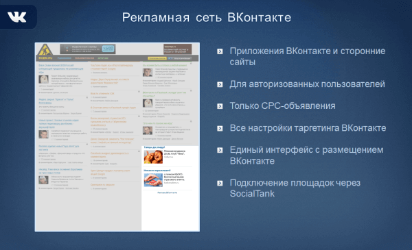 Далее Александр перешел к практической части доклада и рассказал о запуске рекламной сети ВК, инструмента, являющегося близким аналогом Google Display Network и рекламной сети Яндекса:
