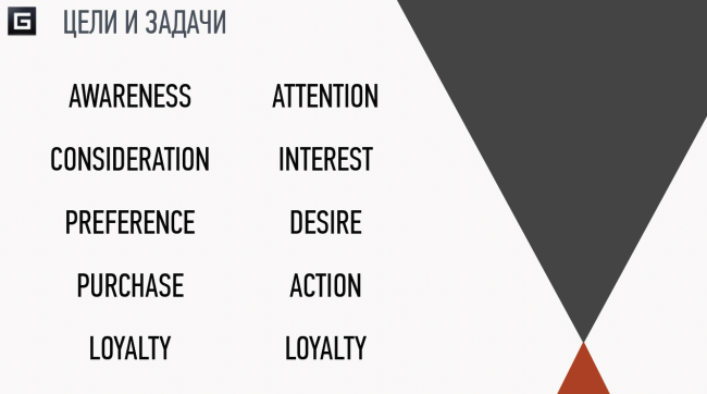 Цели и задачи присутствия бренда в mobile – поддержка коммуникации в новом канале, где гораздо проще выстраивать share of voice. Любой большой компании нужны простые вещи, которые отражают воронку продаж: