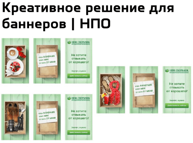 Цель кампании: продвижение продуктов НПФ Сбербанка для увеличения числа заявок на пенсионное страхование, задачи – привлечение пользователей на сайт НПФ Сбербанка, целевые действия на сайте.
