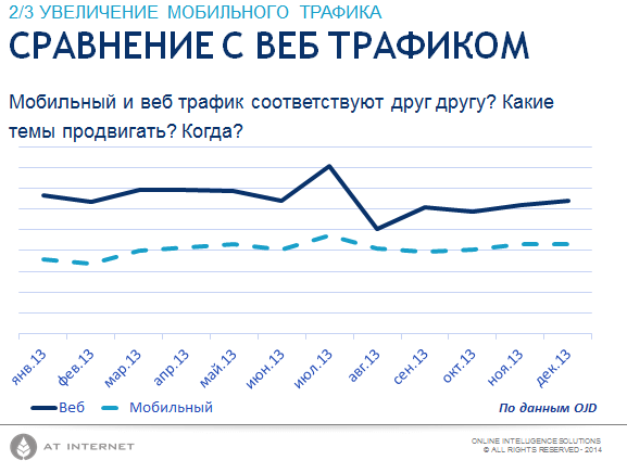 - увеличение мобильного трафика, определение возможностей улучшений,