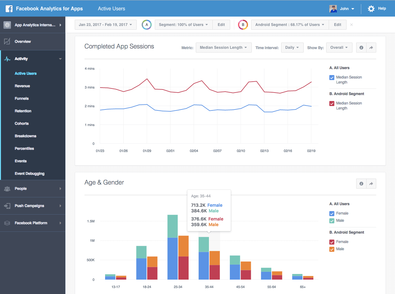 Facebook расширил функционал Analytics for Apps. Маркетологи и разработчики теперь могут сравнивать данные по двум сегментам одновременно и видеть, с каких сайтов приходят пользователи.