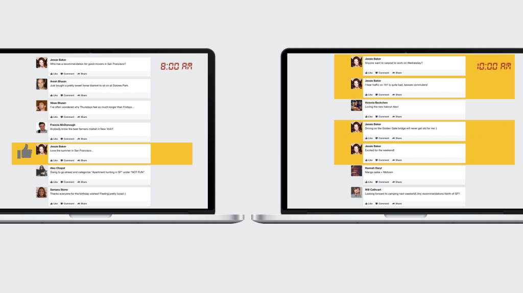 Раньше пользователи читали 57% постов в своих Лентах новостей, в среднем. Они не прокручивали страницу далеко вниз, чтобы увидеть оставшиеся 43% сообщений. С механизмом «выталкивания историй», когда непрочитанные посты стали всплывать выше, доля прочитанных постов увеличилась до 70%.