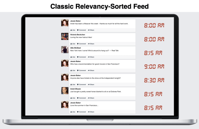 По данным Facebook, тестирование этого изменения показало, что с помощью нового механизма удалось на 5% повысить вовлеченность пользователей («лайки», комментарии, перепосты) во взаимодействие с контентом, публикуемым друзьями, и на 8% увеличить вовлеченность людей во взаимодействие с контентом публичных страниц.