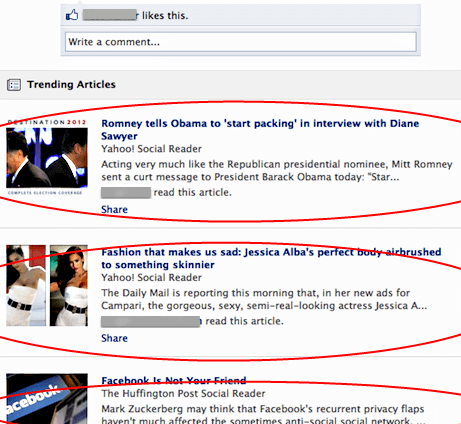 Уже сейчас некоторые пользователи Facebook могут видеть в своей «френдленте» специальный новостной блок, содержащий заголовки, 130-символьные лиды, иллюстрации статей, а также информацию об уже ознакомившихся со статьей друзьях, - сообщает Inside Facebook. Количество таких анонсов в ленте новостей может колебаться от 3 до 6 единиц.