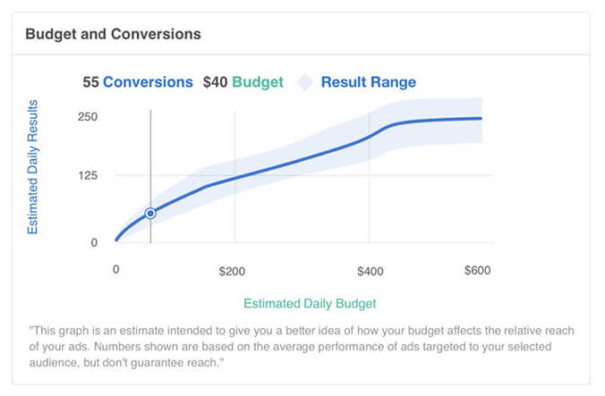 Группы объявлений можно будет оценивать в двух форматах: при помощи бюджетной кривой и линейки с ползунком. Ползунок позволяет менять вводные данные и оценивать изменения в ожидаемых результатах. А кривая бюджета будет обновляться по мере редактирования конкретного набора объявлений.