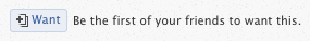 Кнопка «Want» Facebook официально не заявлена среди прочих социальных плагинов на сайте Facebook для разработчиков. Веддингтон предполагает, что она создана специально для объектов Open Graph, имеющих отметку «продукты».