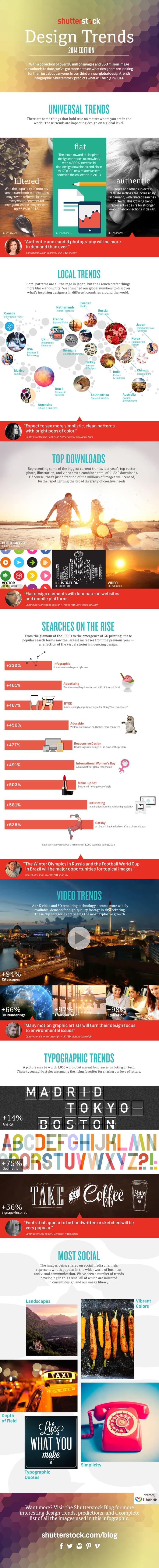 Крупнейший фотобанк Shutterstock представил традиционную инфографику — главные тренды нового года в области графического дизайна, видео и типографики. Список составлен компанией с учетом анализа 350 миллионов скачиваний.