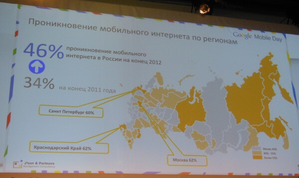 Мобильный интернет в России стремительно растет и развивается. Самые свежие цифры и факты, а также прогнозы по развитию сегмента были представлены компанией Google на мероприятии Google Mobile Day 2012.