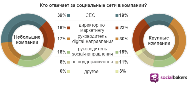 В небольших компаниях социальными сетями часто приходится заниматься генеральному директору. В крупных компаниях за это уже отвечает руководитель digital-направления.