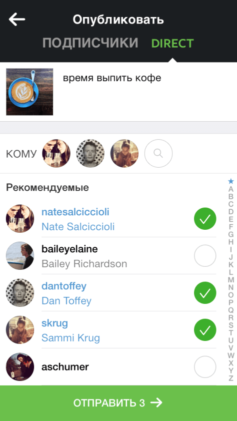 До сегодняшнего дня сервис был устроен таким образом, что вновь опубликованная фотография становилась доступна сразу всем подписчикам вашего аккаунта. Теперь события, которыми вы хотите поделиться только с узким кругом людей, можно отправлять в личные сообщения одному или группе пользователей (до 15 человек).