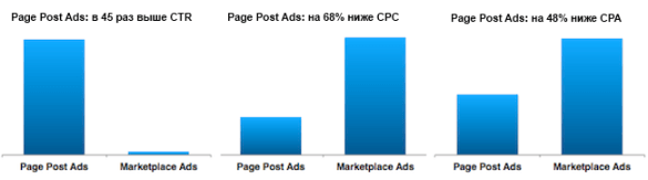Nanigans обнаружили, что реклама Page Post Ads показывает в 45 раз выше CTR и на 68% ниже стоимость клика по сравнению с Marketplace. При этом средняя цена за клик (СPС) колебалась между $0,14 и $0,26. Стоимость за действие (CPA) - под которым считалась регистрация на сайте ритейлера, оказалась на 48% ниже у Page Post Ads, по сравнению Marketplace.