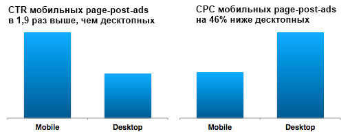 Цена за клик на мобильные Page Post объявления в среднем на 46% ниже, чем на десктопные Page Post Ads.