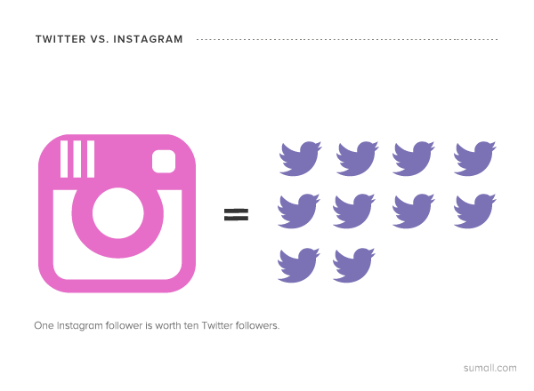 Интересный факт: При сравнении Twitter vs Instagram обнаружилось, что один фолловер Instagram стоит 10 фолловеров Twitter с точки зрения возврата инвестиций. Возможно, пора задуматься, как использовать сервис обмена фотографиями на благо бизнеса.