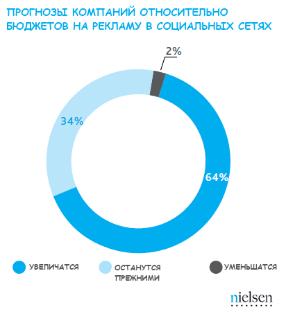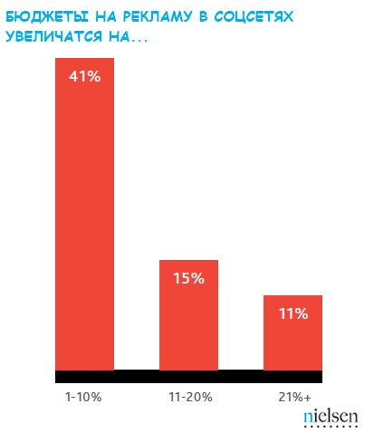 Как уже было отмечено выше, 64% рекламодателей планируют увеличить бюджеты на рекламу в соцсетях. Однако этот рост будет достаточно скромным – 1-10%. Тем не менее, западные аналитики уверены, что это хорошая тенденция для такого молодого канала.