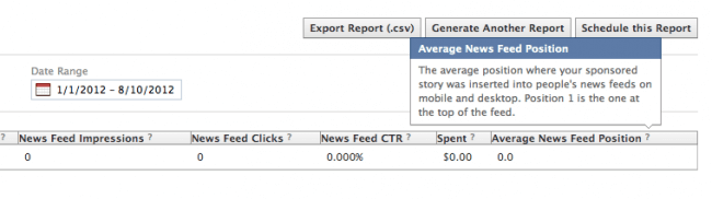 До недавнего времени Facebook не позволял рекламодателям выбирать место размещения «Рекламных историй». Однако в июне эта возможность появилась. С тех пор рекламодатели, создающие отдельные объявления для каждого места размещения, могут узнавать подробности об эффективности Sponsored Stories через рекламное API или Power Editor.