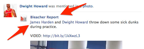 Сообщение, показанное подписчикам Ховарда, на самом деле не относится к его странице. Наоборот, это пост со страницы Bleacher Report, которые поставили ссылку на Дуайта Ховарда, и теперь алгоритм Facebook считает, что эта информация интересна всем, кто подписан на страницу Говарда.