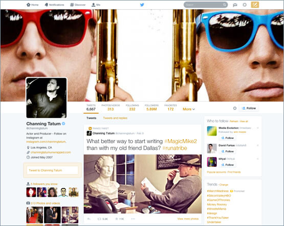 (08.04.2014) Сегодня в Twitter было опубликовано сообщение о том, что сервис микроблогов выкатывает новый дизайн для пользовательских профилей. Согласно заявлению, компания делает все, чтобы каждый пользователь мог удобно и полноценно выражать свои мысли и реализовывать себя.