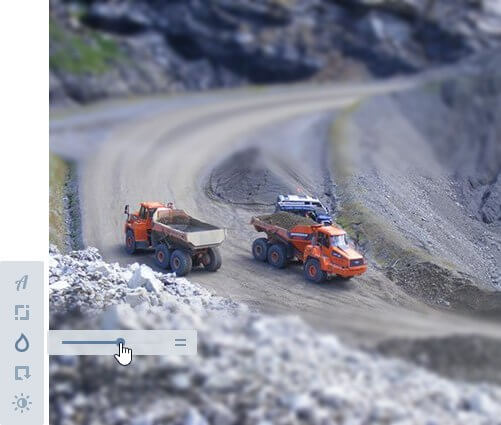 Выбрать нужную для работы часть фотографии поможет кадрирование. А инструмент «Размытие», помимо своего прямого назначения, теперь служит для того, чтобы придать большим объектам игрушечный вид.