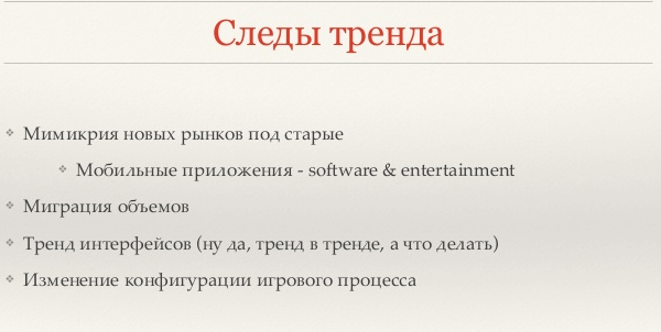 Что касается трендов интерфейсов, по словам Кирилла Готовцева, интерфейсы не предполагают, что вы на них смотрите, достаточно бокового зрения. Будущее за голосовым управлением, которое особенно востребовано мотоциклистами, автомобилистами и работниками механического труда, которые потребляют контент во время работы. Что касается игрового процесса, он становится дробным, так как предполагает постоянные заходы, где бы ни находился игрок.