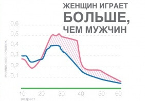 Кроме того, представительницы прекрасного пола играют намного активнее, запуская в среднем 85 игр.