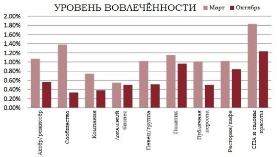 Значительное снижение уровня активности фанов (с 0,74% в марте до 0,38% в октябре) снова продемонстрировали Страницы компаний.