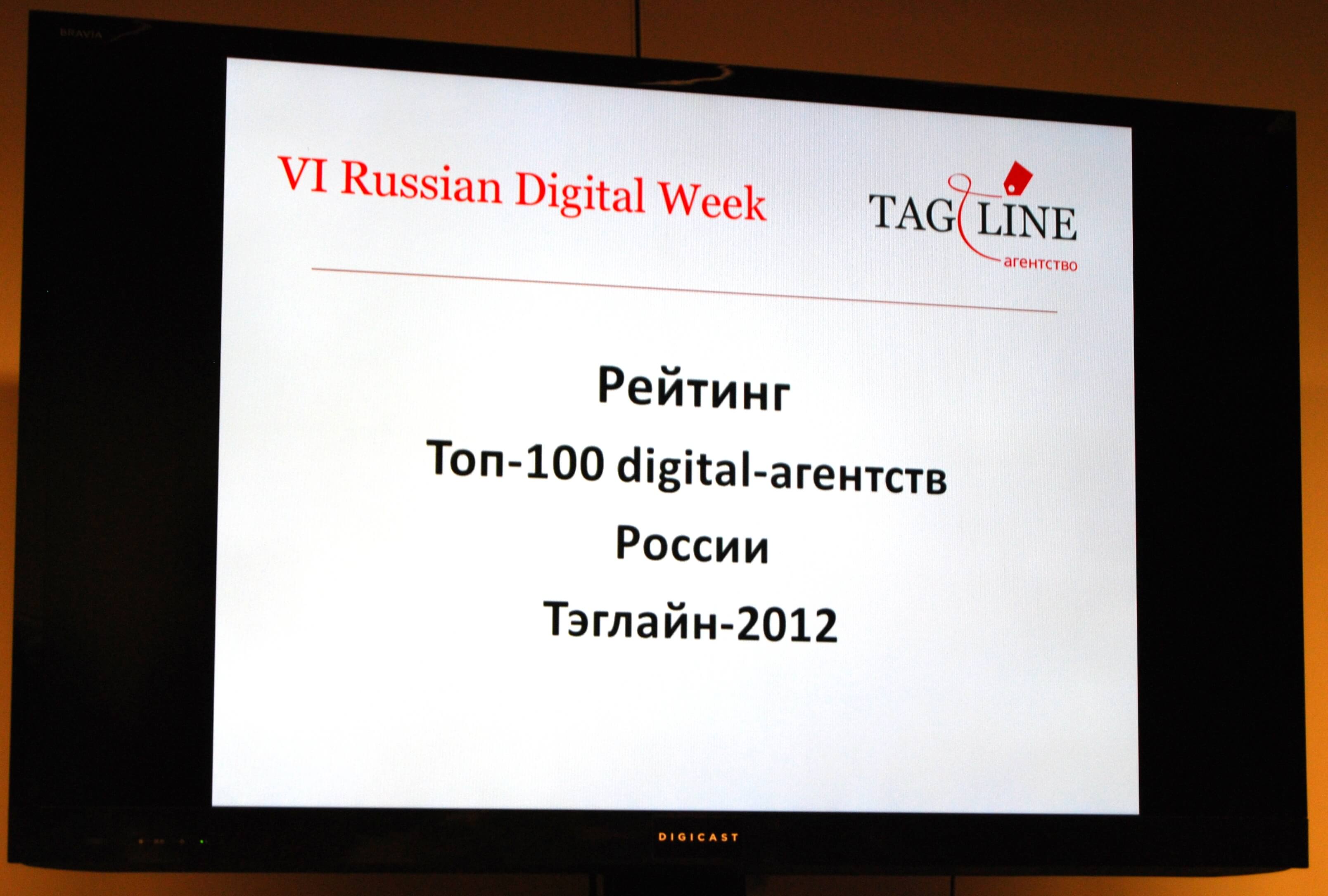09 ноября 2012 года в Москве на конференции VI Russian Digital Week были объявлены результаты Рейтинга digital-агентств России Тэглайн-2012.