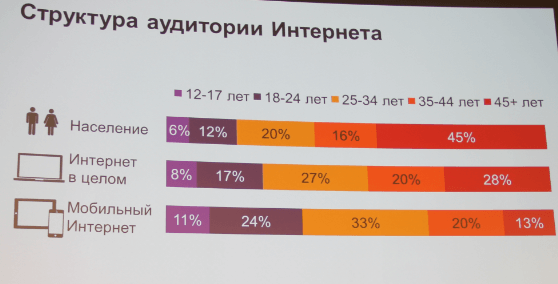 Поло-возрастная структура мобильного интернета и десктопа несколько разнится: