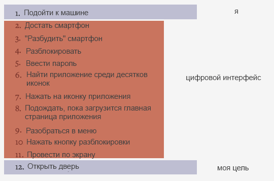 Минус интерфейсов заключается еще в том, что мы вынуждены ориентироваться в сложных базах данных, чтобы получить простейшую информацию. Мы обязаны запоминать бесчисленные пароли и правила соответствия букв, чисел и знаков препинания. И самое главное, мы постоянно отходим от того, что на самом деле хотим сделать.