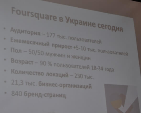 Руководитель SMM-направления и аналитик WebProm Алексей Цимбаленко в докладе «Foursquare в Украине: комьюнити + фан = бизнес» рассказал об истоках Foursquare в Украине и использовании сервиса для продвижения бизнеса.