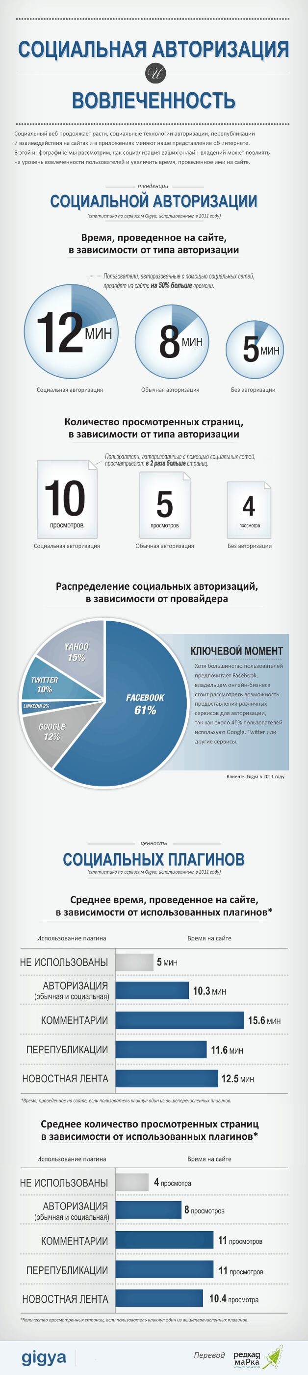 Узнать подробности о влиянии социальной авторизации на вовлечённость можно из инфографики, переведённой на русский язык агентством «Редкая Марка»: