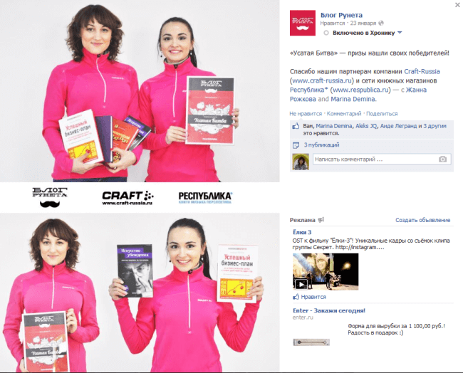 - работа сразу после конкурса – оповещение победителя, связь с ним, например, через email (кстати, правила Facebook запрещают использовать для этого чат). Можно подготовить итоговый репортаж – это мотивирует людей, не победивших в конкурсе, не расстраиваться, а участвовать еще.