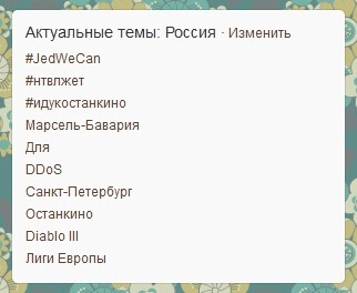 Чтобы включить русские тренды в сервисе микроблогов, необходимо в левой колонке «Актуальные темы в мире» нажать «Изменить» и в списке стран выбрать Россию.