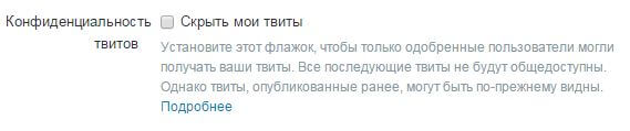 Однако защитить свои твиты могут и уже зарегистрированные пользователи. Для этого в веб-версии сервиса необходимо зайти в раздел «Безопасность и конфиденциальность» в «Настойках» и установить в соответствующем поле флажок «Скрыть мои твиты».