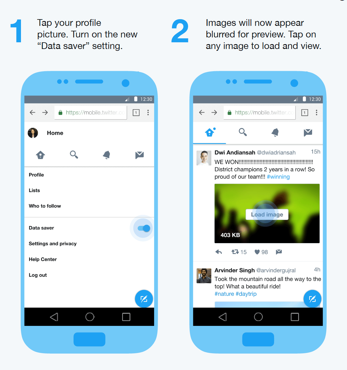 В Twitter Lite доступны все основные функции сервиса, а также реализован режим экономии данных. При включении пользователи будут видеть только превью изображений, выбирая, какое именно хотят загрузить.