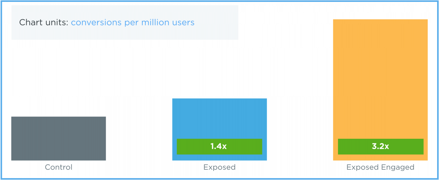 Еще до внедрения отчета компания провела исследование, сравнив данные по группе пользователей, видевших объявление, и группе, которой объявление не показывалось, для определения степени влияния рекламы на повышение конверсий.