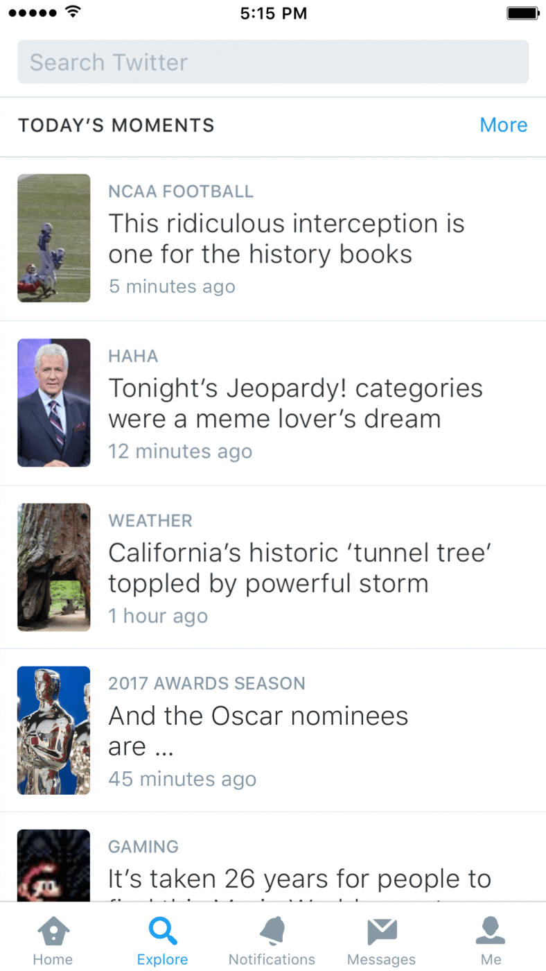 Twitter объявил о запуске нового раздела Explore, который заменит Moments. В нем можно будет найти популярные тренды, моменты, трансляции и поиск в рамках одной вкладки.