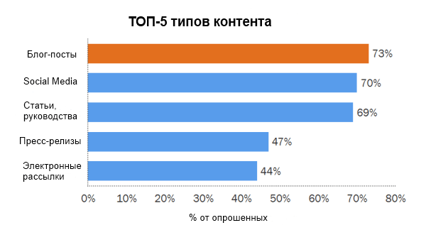 Несмотря на шумиху вокруг такого модного нынче типа контента как инфографика, маркетологи все еще отдают предпочтение старым проверенным формам: блог-постам, статьям, рассылкам.
