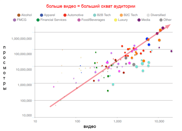 Самыми активными на YouTube являются следующие отрасли бизнеса: СМИ, технологии (как B2C, так B2B), автомобильная индустрия.